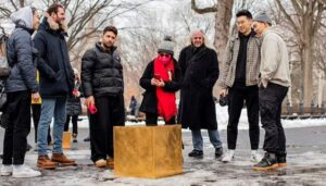 ஜெர்மனியைச் சேர்ந்த நிக்லஸ் காஸ்டெல்லோ (43) என்ற கலைஞர் ஒரு தங்க கன சதுரத்தை வடிமமைத்துள்ளார். இவர் காஸ்டெல்லோ காயின் கிரிப்டோ கரன்சியை விளம்பரப்படுத்துவதற்காக இந்த தங்க கன சதுரத்தை உருவாக்கியுள்ளார்.