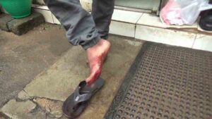 இதன்காரணமாக, வாடிக்கையாரின் கால் பகுதியில் காயம் ஏற்பட்டு, வைத்தியசாலையில் சிகிச்சை பெற்றுள்ளார்.