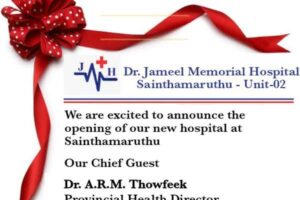 டொக்டர் ஜமீல் ஞாபகார்த்த வைத்தியசாலை, சாய்ந்தமருதில் நாளை வெள்ளிக்கிழமை (11) திறந்து வைக்கப்படவுள்ளது.