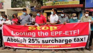 ஊழியர் சேமலாப நிதியத்தில் தாக்கத்தை ஏற்படுத்தக்கூடியவாறான வரி விதிப்பை உடனடியாக நிறுத்துமாறு வலியுறுத்தி நிறுவன ஊழியர்கள் தொழிற்சங்கத்தின் பிரதிநிதிகள் இணைந்து இன்று(10) நாரஹேன்பிட்டி யிலுள்ள ஊழியர் சேமலாப நிதிய அலுவலகத்துக்கு முன்பாக ஆர்ப்பாட்டத்தில் ஈடுபட்ட போது