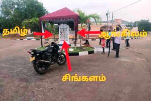 வீதியில் இருந்து உட் செல்லும் போது காட்சிக்கு புலப்படும் வகையில் தமிழ் மொழியும், மற்றைய இரு பங்கங்களில் சிங்களம் மற்றும் ஆங்கிலம் ஆகிய மொழிகளிலும் காட்சிப்படுத்தப்பட்டிருந்தது.