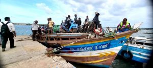 அரச உத்தியோகத்தர்களும் பொதுமக்களும் தற்காலிகமாக ஒழுங்குபடுத்தப்பட்ட மோட்டார் படகில் ஆபத்துகளுக்கு