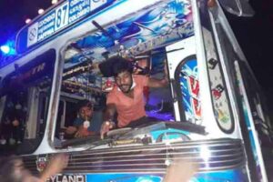 பருத்தித்துறையில் இருந்து கொழும்பு நோக்கி கடந்த மாலை 7.30 மணியளவில் பயணித்துக் கொண்டிருந்த பேருந்து மீது கோப்பாய் சமிக்கை விளக்கு பகுதியில் தாக்குதல் நடத்தப்பட்டது.