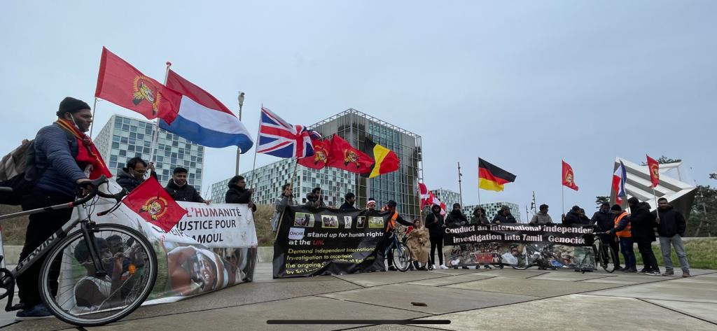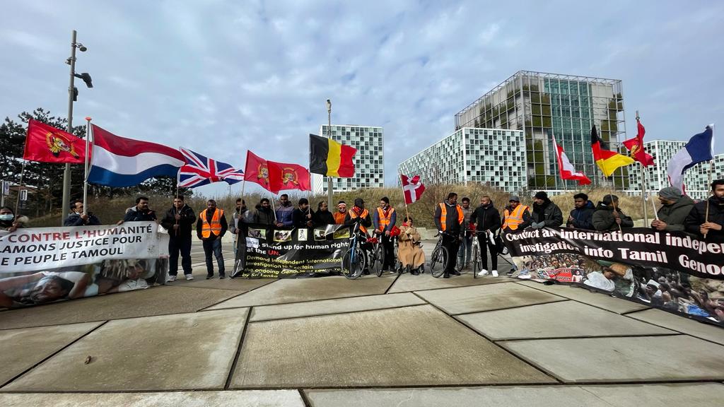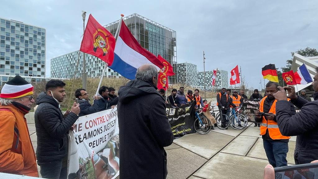 நெதர்லாந்தின் தமிழர் ஒருங்கிணைப்புக் குழுவின் வரவேற்புடன் , டென்காக்ல் அமைந்துள்ள அனைத்துலக குற்றவியல் நீதி மன்றத்தின் முன்றலில் கடும் காலநிலை மற்றும் மணிக்கு 160Km வேகத்தின் புயல்வீச்சின் அபாய எச்சரிக்கை மத்தியிலும் மக்கள் உணர்வெழுச்சியுடன் நடைபெற்ற கவனயீர்ப்பு போராட்டத்தில் கலந்து கொண்டு தமிழர்களின் வேணவாவினை ஐயம்திரிபின்றி இடித்துரைத்தனர்.