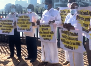 காணி அபகரிப்புக்கு எதிர்ப்பு தெரிவித்து வடக்கு, கிழக்கு மாகாணங்களை பிரதிநிதித்துவப்படுத்தும் நாடாளுமன்ற உறுப்பினர்கள் கொழும்பில் போராட்டமொன்றை முன்னெடுத்துள்ளனர்.