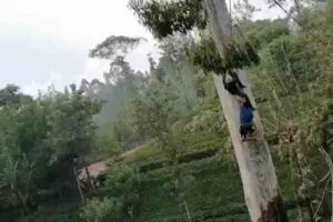 லிந்துலை- லெமேரியா தோட்டத்தைச் சேர்ந்த 25 வயதான பாலச்சந்திரன் அதிஸ்டகுமார் என்ற இளைஞர், நேற்று (26) காலை மரத்தின் கிளைகளை வெட்டுவதற்காக 200 அடி உயரமான யூக்கலிப்டஸ் மரத்தில் ஏறியுள்ளார்.
