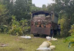 29 தேக்கு மரக்குற்றிகள் அறுக்கப்பட்டு, லொறியில் ஏற்றப்பட்டு, அதற்கு மேல் இயற்கை உரம் இடப்பட்டு, மிகவும் சூட்சுமமான முறையில் மறைத்து கொண்டுசெல்ல முற்பட்டுள்ளது.