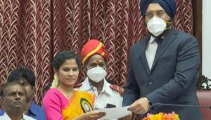 மேயராக தேர்வு செய்யப்பட்ட அவரை மாநகராட்சி கமிஷனர் ககன்தீப்சிங் பேடி மேயரின் சிம்மாசனத்திற்கு அழைத்து வந்து அமர வைத்தார். மேயருக்கான அங்கியை வழங்கினார். அதன்பின்னர் செங்கோல் வழங்கப்பட்டது.