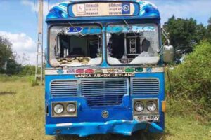 இதனையடுத்து அப்பகுதி மக்கள் இணைந்து பேரூந்தின் மீது தாக்குதல் மேற்கொண்டு பேரூந்தின் கண்ணாடிகளை சேதப்படுத்தியுள்ளனர்