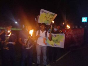 பல்வேறு கோரிக்கைகளை முன்வைத்து, தென்கிழக்கு பல்கலைக்கழகத்துக்கு முன்னால் தீப்பந்தம் மற்றும் சுலோகங்களை ஏந்தியவாறு மாணவர்கள், நேற்றிரவு (07) போராட்டத்தில் ஈடுபட்டனர்.