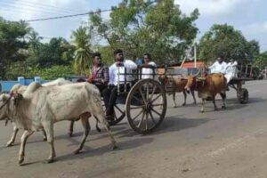 நாட்டில் அதிகரித்துள்ள பொருட்களின் விலையேற்றம் மற்றும் டீசல் தட்டுப்பாடு, மின்வெட்டு உள்ளிட்ட பல்வேறு விடயங்களை காரணம் காட்டி இந்த நிலைமைகளுக்கு அரசு உடனடியாக தீர்வு வழங்க வேண்டும் என கோரி கவனயீர்ப்பு நடவடிக்கைகளை முன்னெடுக்கும் முகமாக முள்ளியவளை காட்டா விநாயகர் ஆலயத்திலிருந்து மாட்டு வண்டியில் கரைதுறைப்பற்று பிரதேச சபை தவிசாளர், உப தவிசாளர் மற்றும் உறுப்பினர்கள் பிரதேச சபை நோக்கி நகர்ந்து செல்கின்றனர்.