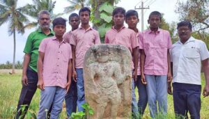அப்போது கிருஷ்ணசாமி என்பவரின் தோட்டத்தில் மூக்கரை பிள்ளையார் என்று இப்பகுதி மக்களால் அழைக்கப்படும் வில்வீரன் நடுகல்லை கண்டறிந்தனர். 3 1/2 அடி உயரம், 1 1/2 அடி அகலத்தில் எடுக்கப்பட்ட நடுகல் கி.பி. 15ஆம் நூற்றாண்டைச் சார்ந்ததாக இருக்கலாம் என மாணவர்களுக்கு எடுத்துக் கூறப்பட்டது.