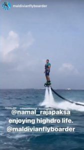 நாமல்ராஜபக்ச மாலைதீவில் பிளைபோர்டிங் ஜெட்ஸ்கை போன்றவற்றில் ஈடுபடுவதை காண்பிக்கும் படங்கள் வெளியாகியுள்ளன.
