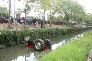இந்த நிலையில், குறித்த உழவு இயந்திரம் கட்டுப்பாட்டிலிருந்து விலகி அருகில் உள்ள நீர்பாசன வாய்க்காலில் விழுந்துள்ளது. குறித்த உழவு இயந்திரத்தை மீட்பதற்கு விவசாயிகள் கடும் பிரயத்தனத்தில் ஈடுபட்டிருந்தமை குறிப்பிடத்தக்கதாகும்.