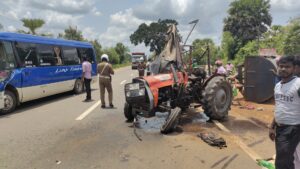 முறிகண்டியிலிருந்து கிளிநொச்சி நோக்கி பயணித்த கழிவகற்றும் உழவு இயந்திரத்தின் பின் பகுதியில் அதே திசையில் பயணித்த சொகுசு பேருந்து மோதியுள்ளது.