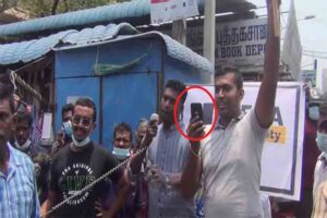 அதில் ஒருவர் தனது கையடக்க தொலைபேசியில் காணொளி பதிவினை மேற்கொண்டவாறே போராட்டத்தில் ஈடுபட்டவர்களுடன் முரண்பட்டார்.