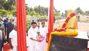 அந்த வளாகத்தில் அமைக்கப்பட்டுள்ள பெரியார் உருவ சிலையையும் திறந்து வைத்து, மலர் தூவி மரியாதை செலுத்தினார்.