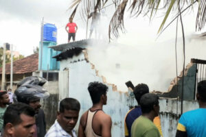 தீ விபத்தின் காரணமாக வீடு ஒன்று முற்றாக எரிந்து சேதமாகியுள்ளதுடன், வீட்டில் நிறுத்தி வைக்கப்பட்டிருந்த இரண்டு மோட்டார் சைக்கிள் மற்றும் மின் பிறப்பாக்கி இயந்திரம் என்பன முழுமையாக எரிந்து சேதமாகியுள்ளன.