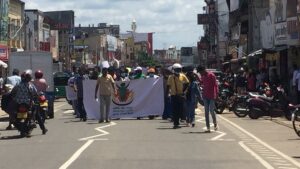 மணிக்கூட்டுக் கோபுர சந்தி மற்றும் பழைய பேருந்து நிலையம் என்பவற்றுக்கு முன்பாக ஆர்ப்பாட்டக்காரர்கள் சுமார் அரை மணிநேரம் பிரதான வீதியை மறித்து போராட்டத்தில் ஈடுபட்டனர்.