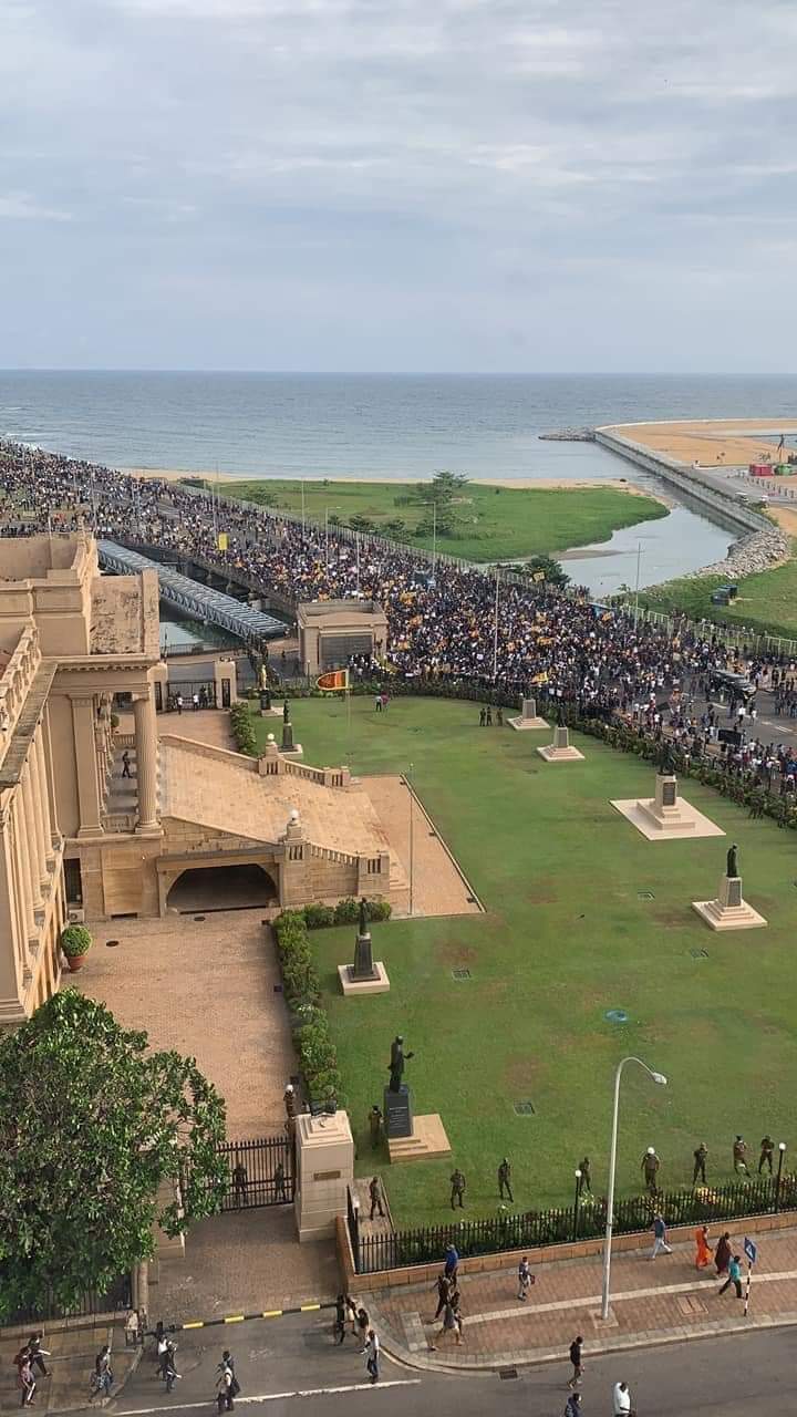 இந்த ஆர்ப்பாட்டம் காலிமுகத்திடலில் இருந்து ஜனாதிபதி செயலகம் வரை சென்று, தற்போது ஜனாதிபதி செயலகத்தை முற்றுகையிட்டுள்ளனர்.