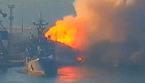 கருங்கடலைக் காக்கும் நெப்டியூன் ஏவுகணைகள் ரஷிய போர்க் கப்பலுக்கு மிகக் கடுமையான சேதத்தை ஏற்படுத்தியது. இது உக்ரைனின் மகிமை. அந்த கப்பல் தற்போது பயங்கரமாக எரிகிறது. 510 குழு உறுப்பினர்கள் உள்ளனர். ஆனால், அவர்களால் உதவி பெற முடியுமா என்பது தெரியவில்லை.