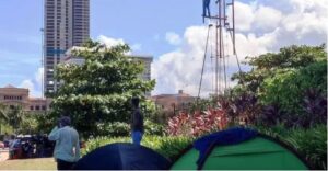 மேலும் போராட்ட களத்துக்கு அருகாமையில் தொலைத்தொடர்பு கோபுரம் ஒன்று நிறுவப்பட்டுள்ளதோடு அதற்கான இணைப்புகள் எதுவும் வழங்கப்படவில்லை எனவும் தெரிவிக்கப்படுகின்றது.