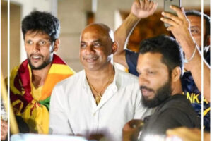 காலிமுகத்திடலில் இடம்பெற்று வரும் அரசாங்கத்திற்கு எதிரான மாபெரும் மக்கள் எழுச்சிப் போராட்டத்தில் இலங்கையின் கிரிக்கெட் அணியின் முன்னாள் தலைவர் சனத் ஜயசூரியவும் கலந்துகொண்டுள்ளார்.