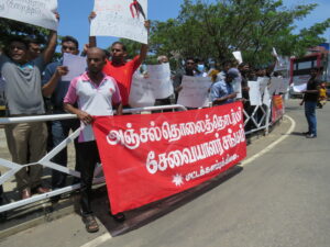 இலங்க வங்கி சங்கம் நாடளாவிய ரீதியில் ஆர்ப்பாட்டத்துக்கு அழைப்பு விடுத்ததையடுத்து மட்டக்களப்பு சங்கத்தின் ஏற்பாட்டில் இன்று புதன்கிழமை காந்தி பூங்காவில் அஞ்சல் தொலைத் தொடர்பு சேவையாளர் சங்கம், பொற்றோலிய கூட்டுதாபன சங்கம் உட்பட தொழிற் சங்கங்களை சேர்ந்த நூற்றுக்கு மேற்பட்டோர் பகல் 12.30 மணிக்கு ஒன்றிணைந்து அரச வங்கிகளில் மேற்கொள்ளப்படும் அரசியல் அழுத்தங்களை நிறுத்து, வாழ்க்கை செலவை குறைத்திடு, மருந்து பொருட்கள், மின்சாரம், எரிபொருள், பால்மா என்பவற்றை தடையின்றி வழங்கு,