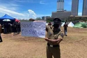 காலி முகத்திடலில் ஆர்ப்பாட்டத்தில் ஈடுபட்ட பொலிஸ் அதிகாரி பணி நீக்கம் செய்யப்பட்டுள்ளதாக பொலிஸ் ஊடகப் பிரிவு தெரிவித்துள்ளது.