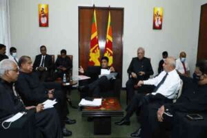 இதன்போது ஒழுங்குப் பிரச்சினையை எழுப்பிய சஜித் பிரேமதாஸ, தற்கொலைக் குண்டுத்தாக்குல்களால் சேதமடைந்த, கொச்சிக்கடை புனித அந்தோனியார், கட்டுவாப்பிட்டிய, சீயோன் ஆகிய தேவாலயங்களுக்கு நாங்கள் என்ன செய்தோம் எனக் கேளுங்கள். இதுதொடர்பில், ஆண்டகை மல்கம் ரஞ்சித்துக்கு நன்றாக தெரியும்.