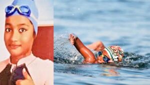 கடலில் 25 கிலோ மீட்டர் தூரத்தை அவர் 4 மணி 48 நிமிடத்தில் நீந்தி கடந்துள்ளார். அவரது இந்த சாதனை இந்திய சாதனை புத்தகத்தில் இடம் பிடித்தது.