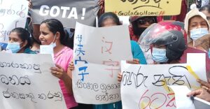 தமிழ், சிங்களம் மற்றும் ஆங்கில மொழி பதாதைகளை தாங்கியவாறு போராட்டம் மேற்கொண்ட மக்கள் சீனா மொழியையும் தாங்கி பதாதைகளுடன் போராட்டத்தை மேற்கொண்டிருந்ததனை அவதானிக்க முடிந்தது.