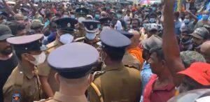 இதேவேளை பொலிஸார் அங்கு பொல்லுகள், தடிகளுடன் களமிறங்கியிருந்ததாக எமது செய்தியாளர் தெரிவித்ததுடன், கண்ணீர்ப்புகை வாகனம் மற்றும் ஒரு தரப்பு பொலிஸார் போராட்டக்காரர்களின் எதிர்ப்பினால் அங்கிருந்து சென்றுள்ள நிலையில், மற்றுமொரு தொகுதியினர் அப்பகுதியிலேயே இருப்பதாகவும் அவர் குறிப்பிட்டார்.