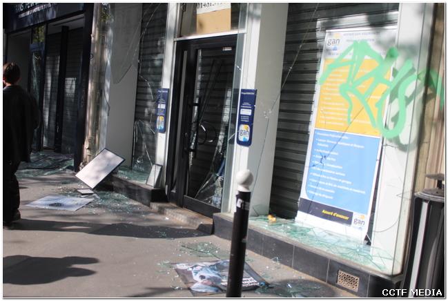 பேரணி சென்றுகொண்டிருந்த பாதைகளில் கிளர்ச்சியாளர்களின் வன்முறைகளால் வர்த்தக நிலையங்கள், வங்கிகள், பேருந்து தரிப்பிடங்களுக்கு பெரும் சேதங்கள் ஏற்படுத்தப்பட்டிருந்தமையைக் காணமுடிந்தது.