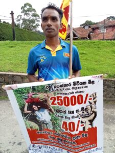 அவர், நாட்டில் தற்போது நிலவி வரும் பிரச்னைகளுக்கு அரசு உடனடியாகத் தீர்வு வழங்க வேண்டும் , உரப்பிரச்சினை, பொருளாதாரப் பிரச்சினை, எரிவாயு மற்றும் பொருட்களின் விலை உயர்வு போன்ற பிரச்சினைகளுக்கு அரசு தீர்வு வழங்க வேண்டும் என வலியுறுத்தி கடந்த சனிக்கிழமை காலை 9.30 மணியளவில் இராகலை முருகன் ஆலயத்தில் மத வழிபாடுகளின் பின்னர் நுவரெலியா ; ஹட்டன், கினிகத்தனை, அவிசாவளை வழியாக கொழும்பு காலிமுகத்திடலில் உள்ள “கோட்டா கோகம” வை நோக்கி நடைபயணத்தினை ஆரம்பித்தார்.