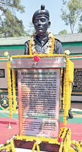 ஜம்மு-காஷ்மீரில் தீவிரவாதிகளுடன் போரிட்டு உயிர் நீத்த கோவையைச் சேர்ந்த ராணுவ வீரருக்கு, மேகாலயா மாநிலத்தில் சிலை அமைக்கப்பட்டுள்ளது.