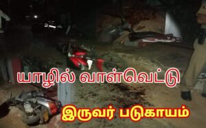 வீட்டின் முன்பாக இருவர் மோட்டார் சைக்கிள்களில் நின்று கதைத்துக் கொண்டிருந்த போது அங்கு 2 மோட்டார் சைக்கிள்களில் வந்த மூவர் வாள்வெட்டுத் தாக்குதலை மேற்கொண்டதுடன் மோட்டார் சைக்கிள்களையும் சேதப்படுத்திவிட்டுத் தப்பித்தனர்