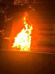 நேற்றைய தினம் பசில் ராஜபக்ச உள்ளிட்ட முக்கிய நபர்களின் வீடுகளுக்கு தீவைக்கப்பட்டது. அந்த வகையில் தற்போது யாழ்ப்பாணம் சண்டிலிப்பாய்யில் உள்ள நாடாளுமன்ற உறுப்பினர் அங்கஜன் இராமநாதனின் அலுவலகத்திற்கும் தீவைக்கப்பட்டுள்ளதாக தெரிவிக்கப்பட்டுள்ளது.