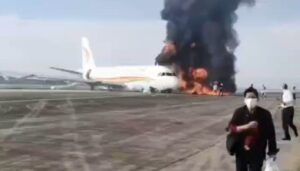 சீனாவின் சாங்கிவிங் விமான நிலையத்தில் திபெத்திய ஏர்லைன் நிறுனத்தை சேர்ந்த விமானம் ஒன்றும் பறப்பதற்காக ஓடுதளத்தில் சென்றபோது தீப்பிடித்து எரிந்த சம்பவம் பரபரப்பை ஏற்படுத்தியுள்ளது.