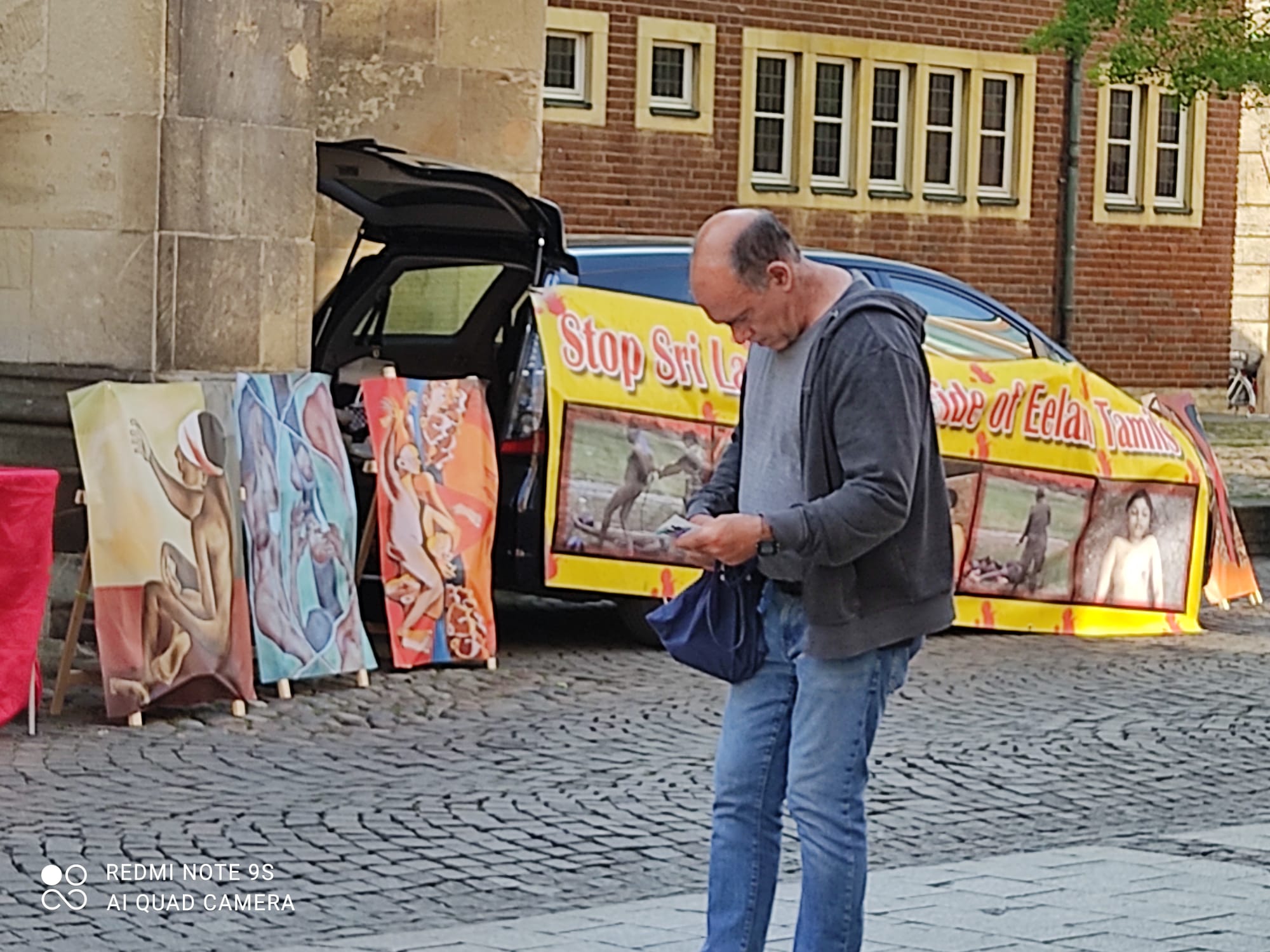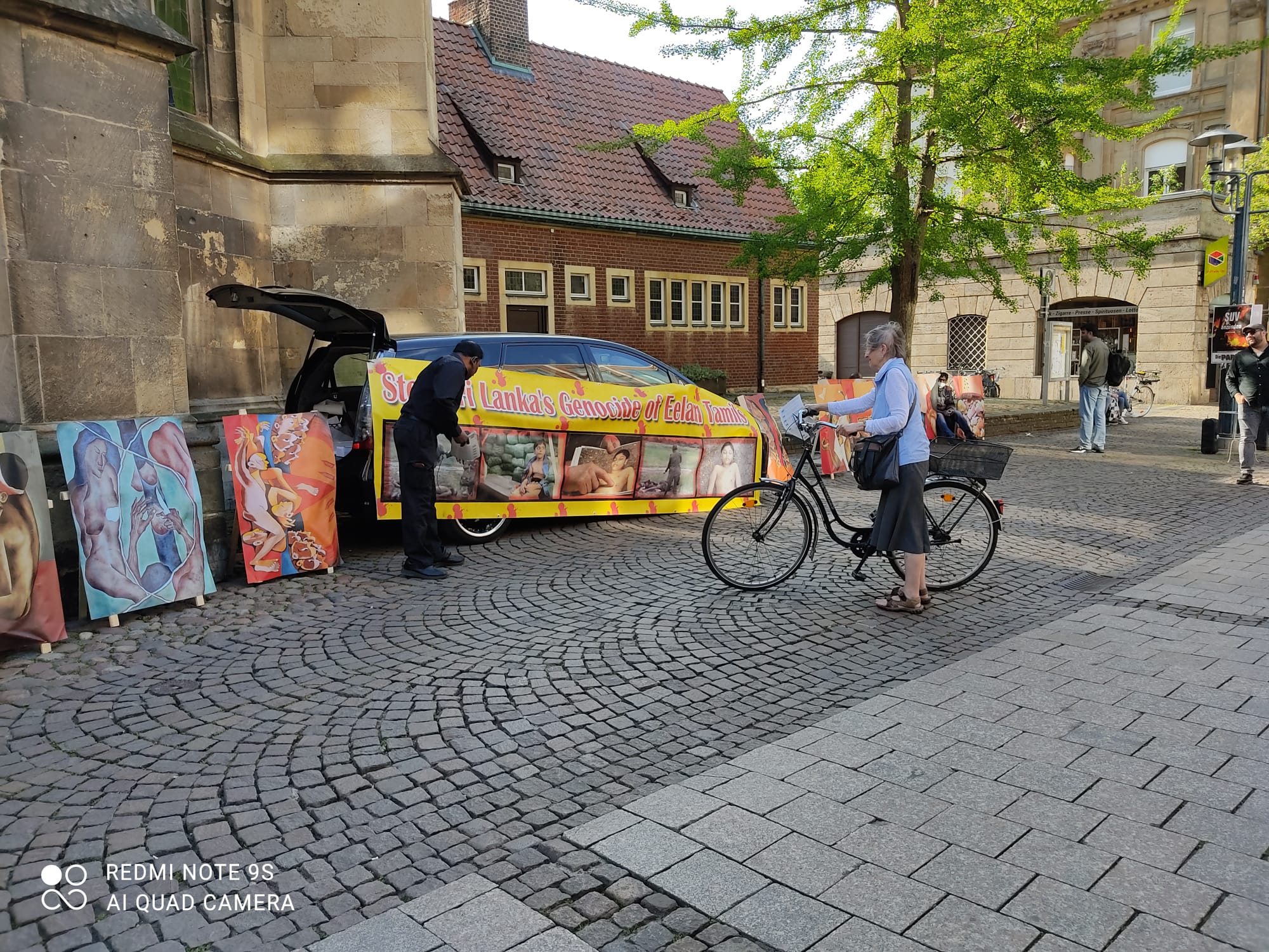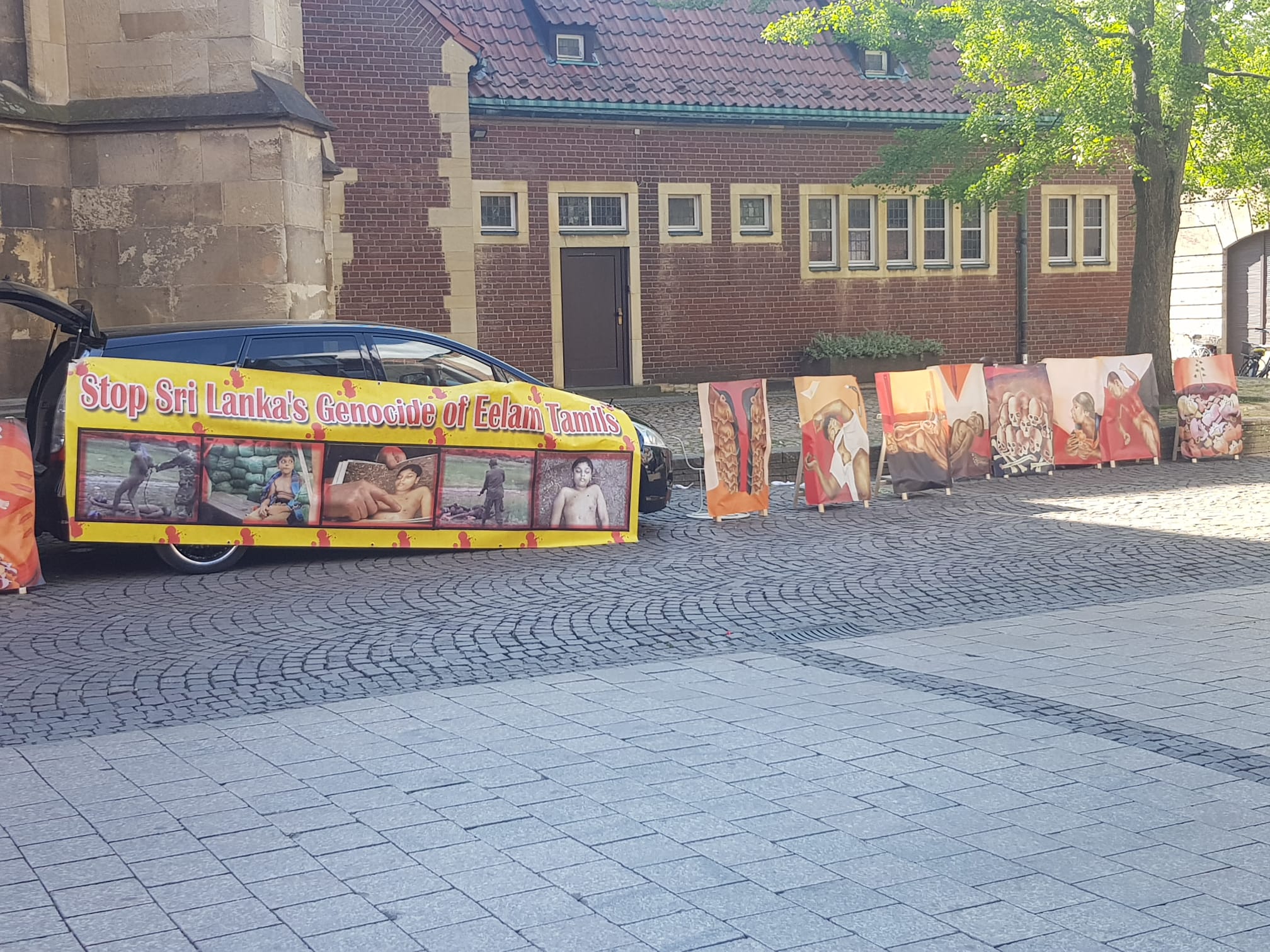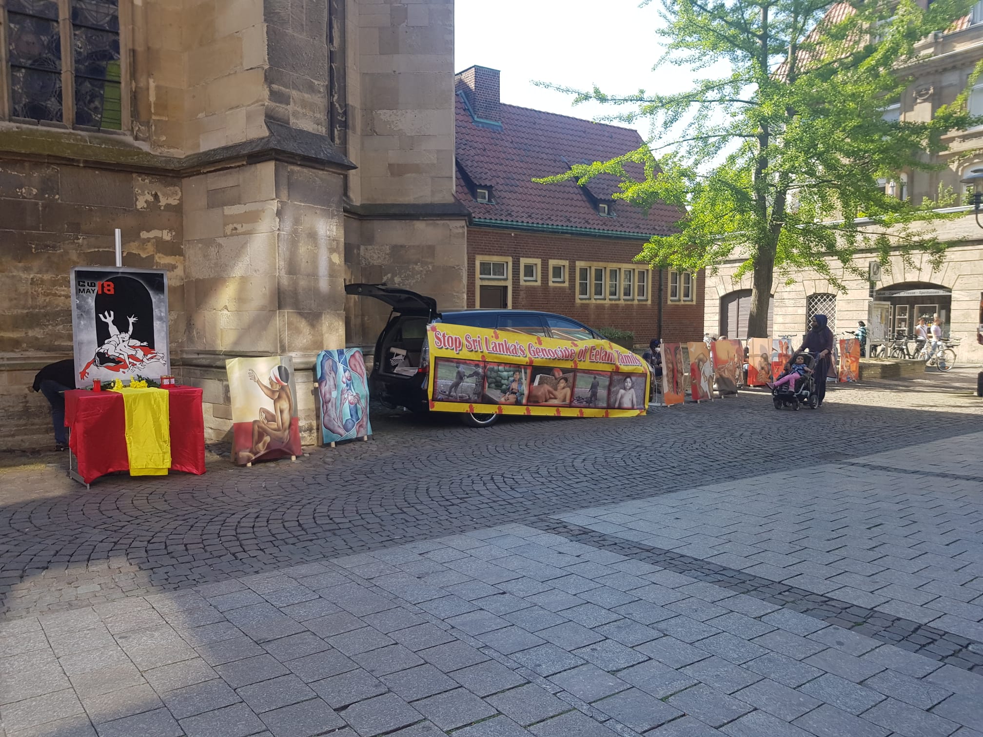 யேர்மனியில் மே 4 ஆம் திகதியிலிருந்து மே 17 திகதி வரை 14 நகரங்களில், சிறிலங்கா சிங்கள இனவெறி அரசினால் தமிழீழ மக்கள் மீது நிகழ்த்தப்பட்ட இனவழிப்பினை, வேற்றின மக்களுக்கு எடுத்துக் கூறும் வகையில் கவனயீர்ப்பு நிகழ்வுகள் நடைபெற்று வருகின்றன. இதன் தொடர்ச்சியாக 11.05.2022 அன்று முன்ஸ்ரர் (Münster) வாழ் மக்களால் நகர மத்தியில் கவனயீர்ப்பு நிகழ்வுகள் மிகவும் உணர்வுபூர்வமாக நடைபெற்றது. தமிழின அழிப்பின் அவலத்தைக் கண்முன் காணும் ஓவியக் காட்சிப்படுத்தல்கள் பார்ப்பவர் மனங்களை மிகவும் பாதித்திருந்தன. இதேவேளை மனிதநேயச் செயற்பாட்டாளர்களும், இளையவர்களும் இணைந்து துண்டுப்பிரசுரங்களை வழங்கி தமிழின அழிப்பின் வலியினை வேற்றின மக்களுக்கு எடுத்து விளக்கினர்.