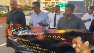 >இந்நிலையில் ரக்பி வீரர் தாஜுனின் கொலைக்கு நீதி வேண்டி இன்றையதினம் கோட்டா கோ கமவில் போராட்டம் முன்னெடுக்கப்பட்டமை குறிப்பிடத்தக்கது