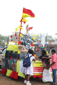முன்னதாக இன்று காலை கிளிநொச்சியிலிருந்து ஆரம்பமான ஊர்தி பரந்தன் முல்லைத்தீவு வீதி வழியாக சென்று புதுக்குடியிருப்பு நகரை அடைந்து,