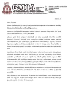 தமது கோரிக்கைகளுக்கு அதிகாரிகள் சாதகமான பதிலை வழங்கத் தவறினால், மே 25 ஆம் திகதி சுகாதாரத் துறையின் ஏனைய ஊழியர்களுடன் இணைந்து தமது தொழிற்சங்கப் போராட்டத்தை ஆரம்பிக்கவுள்ளதாகவும் மருத்துவ அதிகாரிகள் சங்கம் எச்சரித்துள்ளது.
