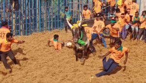 அதன் பின்னர் வரிசையாக ஒன்றன் பின் ஒன்றாக போட்டிக்கான காளைகள் அவிழ்த்து விடப்பட்டன. சீறிப்பாய்ந்த காளைகளை சீருடை அணிந்து வந்த மாடு பிடி வீரர்கள் போட்டிபோட்டு மடக்கி பிடித்தனர்.