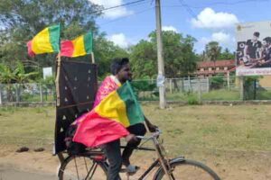 காலி முகத்திடலில் அமைக்கப்பட்டுள்ள “கோட்டா கோ கம” நோக்கி விசுவமடு பகுதியிலிருந்து குடும்பஸ்தர், துவிச்சக்கர வண்டியில் பயணத்தை ஆரம்பித்துள்ளார்.