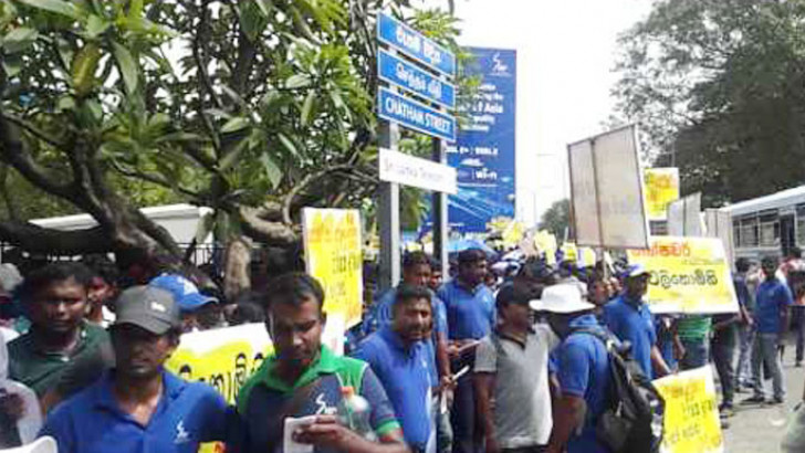 மேன்பவர் ஊழியர்களை நிரந்தர சேவைக்கு இணைத்துக் கொள்ளுமாறு தெரிவித்து அனைத்து தொழிற்சங்கங்களும் இணைந்து இன்று எதிர்ப்பு பேரணியொன்றை ஏற்பாடு செய்திருந்தன.