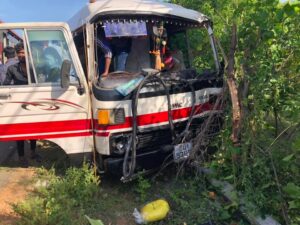யாழ்ப்பாணம் – கண்டி நெடுஞ்சாலையில் உள்ள பொலிஸ் நிலையத்திற்கு அருகில் வேக கட்டுப்பாட்டை இழந்த மினிவேன் , வீதியோரமாக நின்ற மோட்டார் சைக்கிளுடன் மோதி விபத்துக்குள்ளானது.