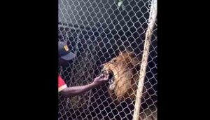 கரீபியன் நாடுகளில் ஒன்றான ஜமைக்காவில் சிங்கம் ஒன்று பரமாரிப்பாளரின் விரலை கடித்து குதறும் வீடியோ இணையத்தில்