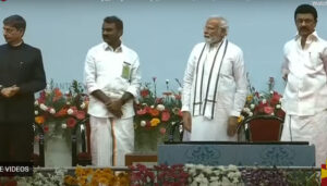 நேரு ஸ்டேடியத்தில் நடைபெற்ற விழாவில் பங்கேற்ற பிரதமர், பல்வேறு கட்டமைப்பு செயல் திட்டங்களை காணொலி வாயிலாக துவக்கி வைத்தார். தாம்பரம்-செங்கல்பட்டு இடையே 30 கி.மீ. தூரத்துக்கு ரூ.598 கோடி செலவில் அமைக்கப்பட்டுள்ள 3-வது ரெயில் பாதையை பிரதமர் மோடி திறந்து வைத்து நாட்டுக்கு அர்ப்பணித்தார். இதேபோல் மதுரை-தேனி இடையே ரூ.506 கோடி செலவில் அமைக்கப்பட்டுள்ள அகல ரெயில் பாதையையும் திறந்து வைத்து நாட்டுக்கு அர்ப்பணித்தார்.