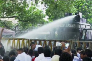 மருத்துவபீட மாணவர்கள் முன்னெடுத்த ஆர்ப்பாட்ட பேரணி மீதே இவ்வாறு பொலிஸார் கண்ணீர் புகை மற்றும் நீர்த்தாரை தாக்குதல் மேற்கொண்டுள்ளனர்.